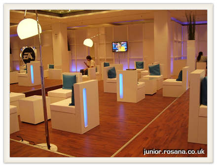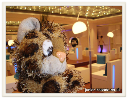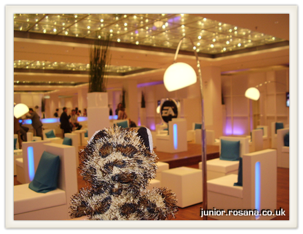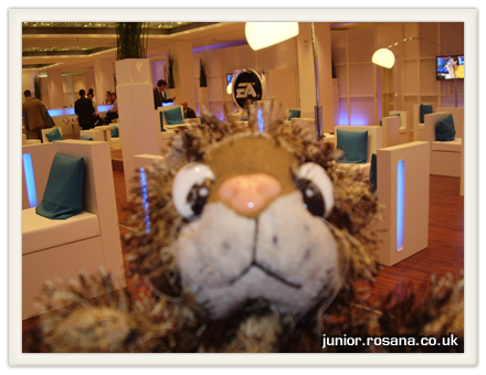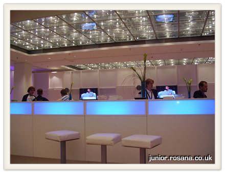 Junior was in augustus 2006 in Leipzig, voor de Games Convention! Omdat de secretaris (beter bekend als papakat) en de secretaresse (ook beroemd als mamakat) "fachbesuchers" waren, kon Junior lekker rustig bijkomen in de Business Lounge van EA. Geen drukte. Alleen zakenlui en Junior ![]()